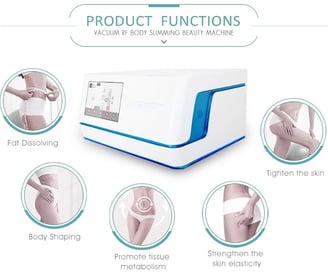 R.F makes water molecules in the fat revolve with high speed to produce friction and shock, then triglyceride go out from fat. R.F energy with 1-10Mhz could get to 4-15mm skin depth, which makes every layer get heat evenly. The new collagen makes skin turn tighten. This RF makes the reorganizing fat cells connect more closely, stimulate the collagen re-grow, avoiding flabby skin after slimming treatment.