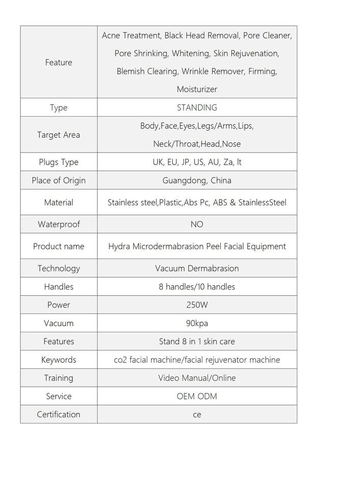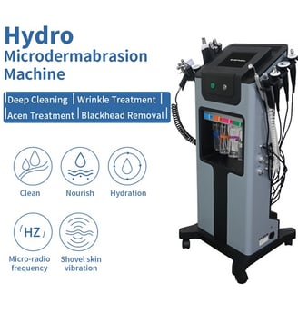 Hydra dermabrasion completely changed the traditional way, which is hand cleaning skin relying on individual' practice skills.Micro dermabrasion uses vacuum suction mode controlled by intelligent process, through the combination of products and equipment to improve skin texture.The main advantage of the dermabrasion machines lies in than it is much ge ntle by using only water,and enables treatment diversification by using with skin care products for different functions like essential oil, whitening products, lactic acid, salicylic acid and more, to achieve various aims on customers" request.
