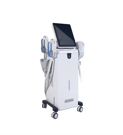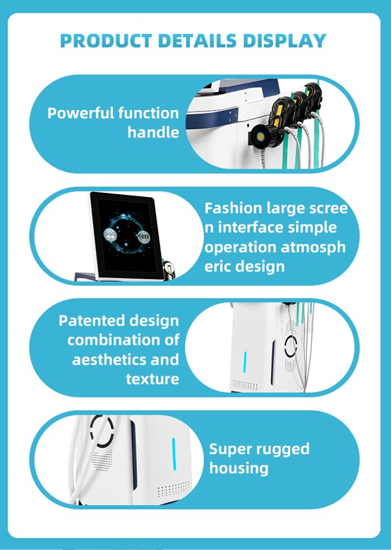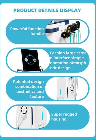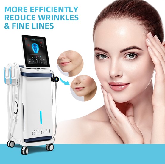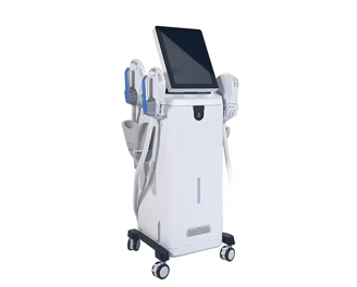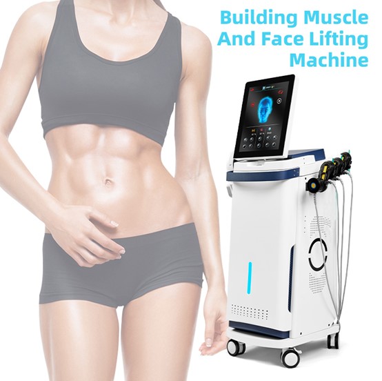 The machine uses non-invasive HIFM (High-Intensity Focused Electromagnetic Field) technology to release high-frequency magnetic vibration energy through handles to penetrate the muscles to a depth of 8cm, and induce continuous expansion and contraction of muscles to achieve high-frequency extreme training , to deepen the growth of myofibrils (muscle enlargement), and produce new collagen chains and muscle fibers (muscle hyperplasia), thereby training and increasing muscle density and volume.