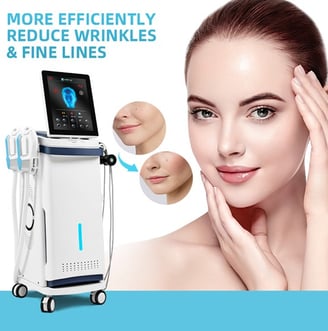 The principle of EMRF is to release high-intensity facial electromagnetic stimulation by treating the head patch(high-intensity facial electromagnetic stimulation)and Radio Frequency (RF) energy directly into the tissue through the treatment head patch. The combination of the two energies provides a synergistic effect, triggering muscle rhythmic contraction and pulling, improving muscle strength and rest tension, strengthen the facial muscle structure and facial fascia, while the radio frequency evenly heats the dermis to stimulate the production of collagen and elastin fibers, thereby enhancing and firming the facial contour and shaping the face, as well as improving the skin texture, so that you have a clearer, more defined, revitalized look.