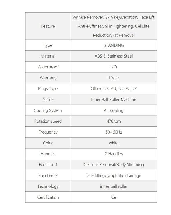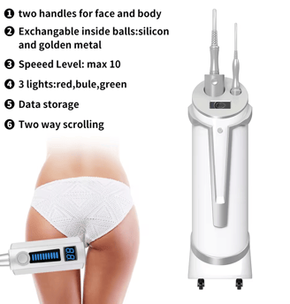 The inner ball roller apparatus is a non-invasive mechanical compression micro-vibration treatment. The principle is that the silicone ball rotates along the roller 360° to generate compression micro-vibration. As the ball rotates and exerts pressure on the skin, it produces a "pulsation compression" effect, realizing continuous push pull kneading reciprocating motion, and the tissue will experience some pressure And lifting action, will not squeeze or damage the skin, the tissue is exerted pressure to stretch the cells to naturally and deeply stimulate cell activity, blood flow and oxygenation, fat deposits are pressurized and thus loosened to finally decompose, reducing cellulite and Removes cellulite.