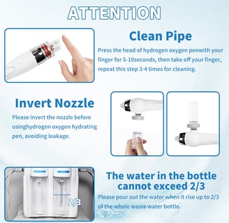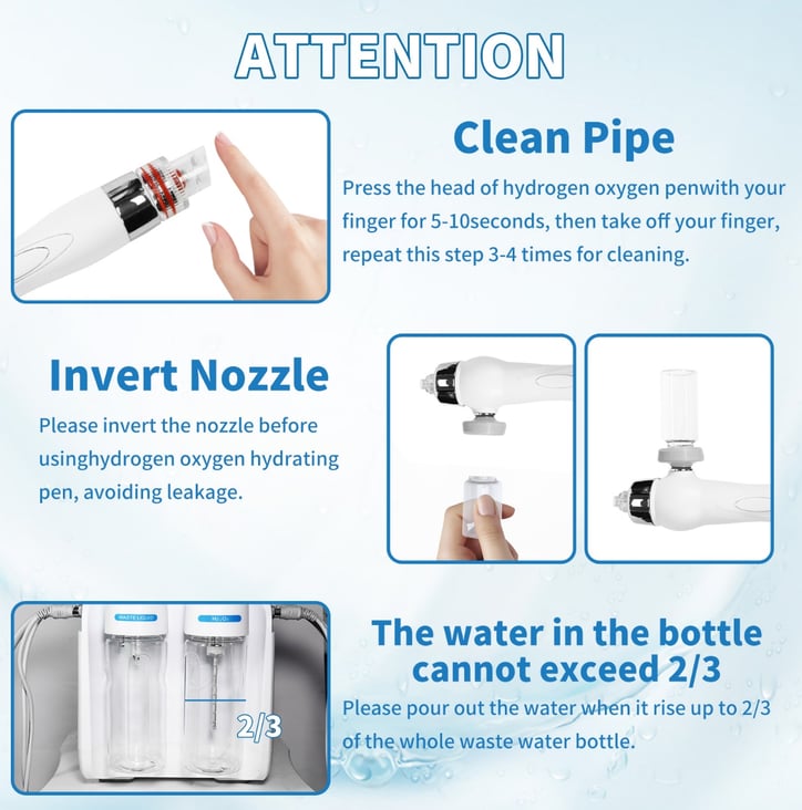 4.H2O2 spray: producing oxyhydrogen combined with essence, quickly penetrating dermis through high pressure injection to provide nutrients thus reduce wrinkles, whiten, brighten and rejuvenate skin.
