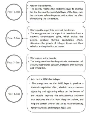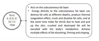 Frozen HIFU is a novel and safe and effective cosmetic method to treat facial skin aging and sagging, as well as to treat obesity and sagging. Provides deep penetration and truly long-lasting results without damaging the skin's surface while ensuring skin comfor.