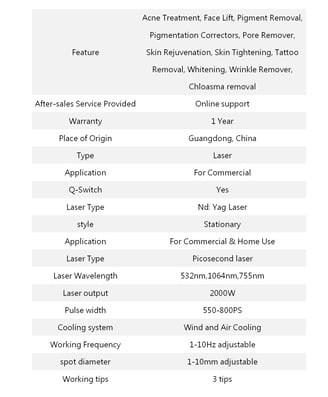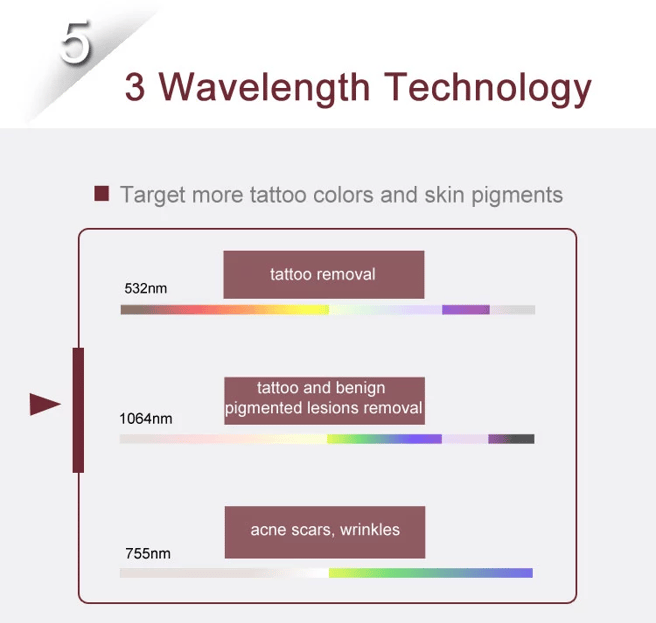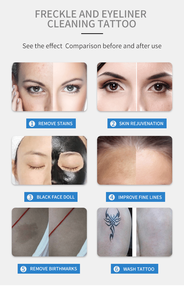In a short time with high power, it clearly removes pigment(Tattoo, Epidermal and Dermal Pigment Lesion).