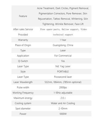 Hot Sale Portable Picosecond Laser Machine For Removing Tattoos And Pigmentation