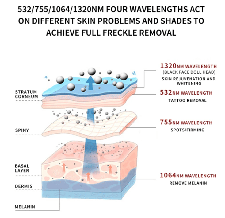 6. 1320nm ( black doll ) for skin whitening, skin rejuvenation ,face deep cleaning,shrink pores,etc.