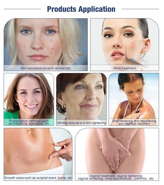 Fractional probe: Generally used for skin rejuvenation treatments, such as facial rejuvenation, acne, shrink pores, or body treatments such as stretch marks, scars, etc.