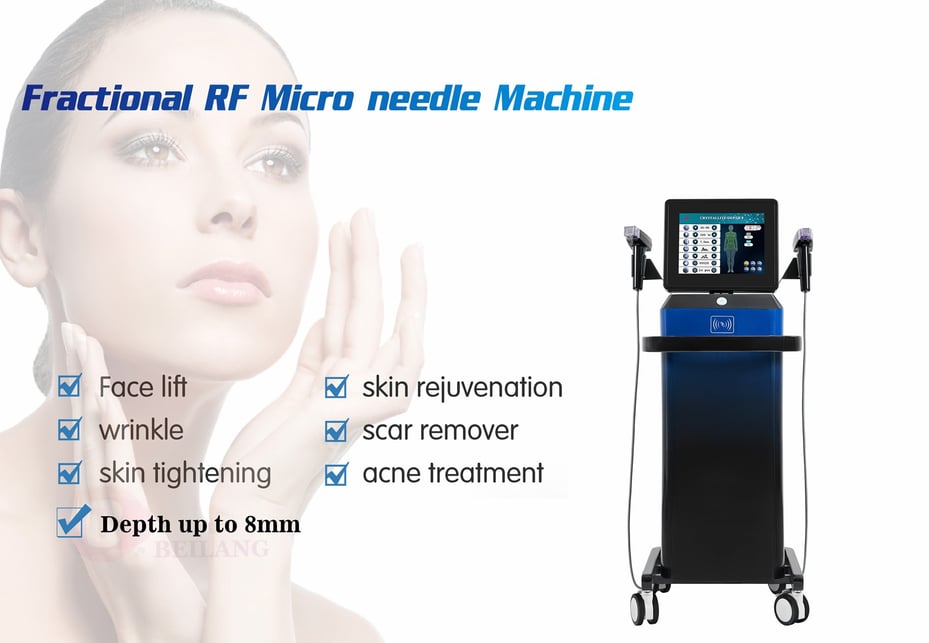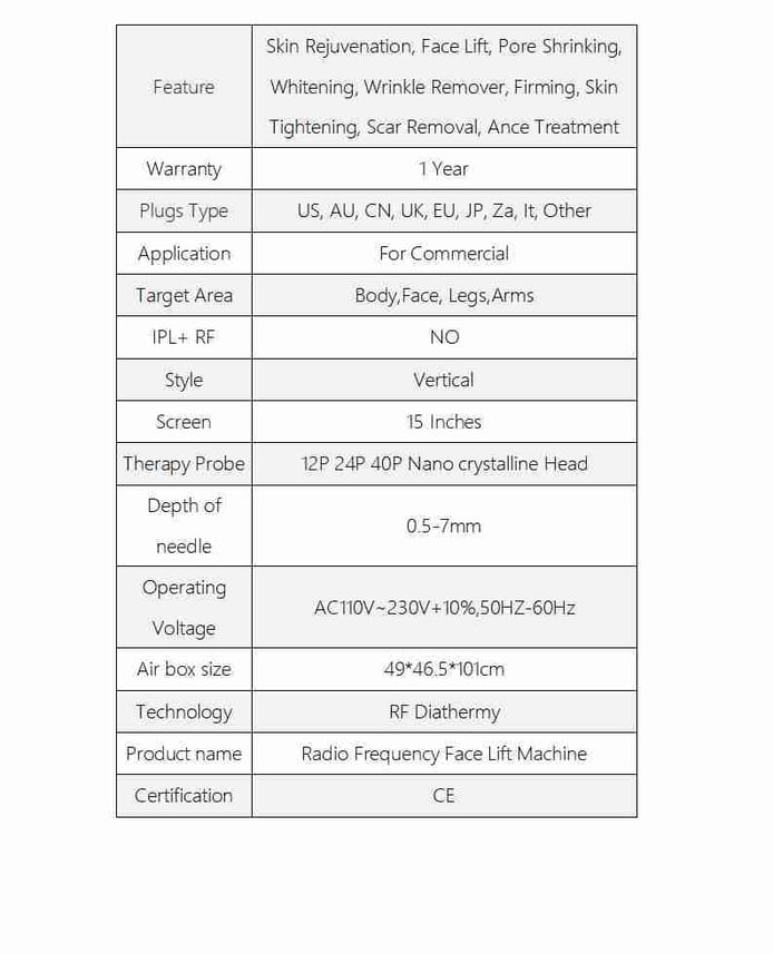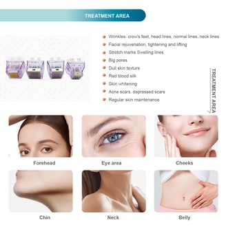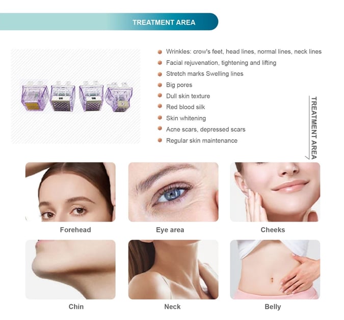 2.A variety of probe specifications: 12P, 24P, 40P, nano crystal head, more peace of mind without repetition. Provide the deepest RF fractional therapy, which can penetrate subcutaneous tissue up to 8mm.
