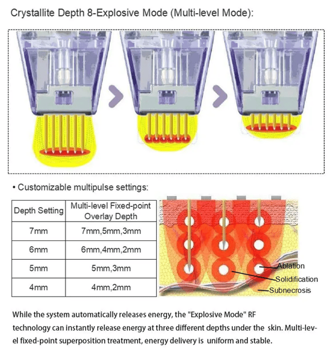 4.Original burst mode: deep segmented subcutaneous heating technology, multi-level fixed-point superposition treatment at one time, uniform and stable energy delivery.
